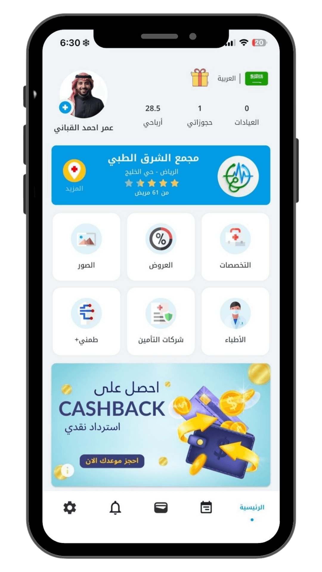 تمكّن المراجع من تصفح عروض العيادات والتخصصات بطريقة جذابة مما يزيد التفاعل ووقت الاستخدام ويرفع نسبة الحجز
